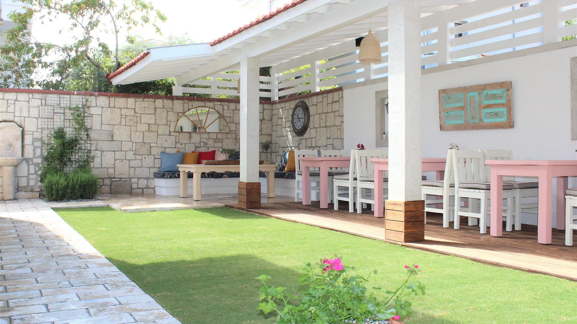 Dans le jardin les résidents peuvent prendre leur déjeuner. Kekik Alacati Cafe & Ev Yemekleri sert différents types de plats turques à 300 mètres de cet hébergement.