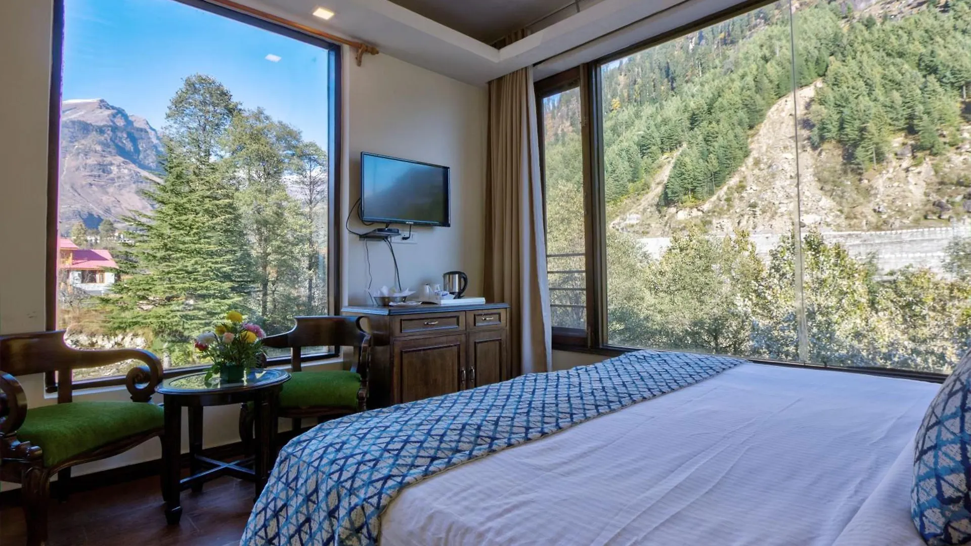 The venue enjoys a prime location close to a valley. The hotel is set 10 minutes by car from Manali Sanctuary.